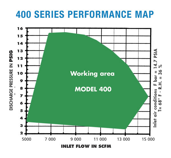 Inlet Connection: 16" (420 mm) flange, PN 10 DN 400 Outlet Connection: 14" (355 mm) flange, PN 10 DN 350 Operating Speed: 3570 rpm in direct drive (60Hz) Lubrication: Oil type with constant level Drive: Direct drive or gear box or V-belts Vibration Tolerance: 1.34 mills peak-to-peak (4,5 mm/s RMS) Shaft End: 2" 3/4 (70 mm), inlet end drive standard